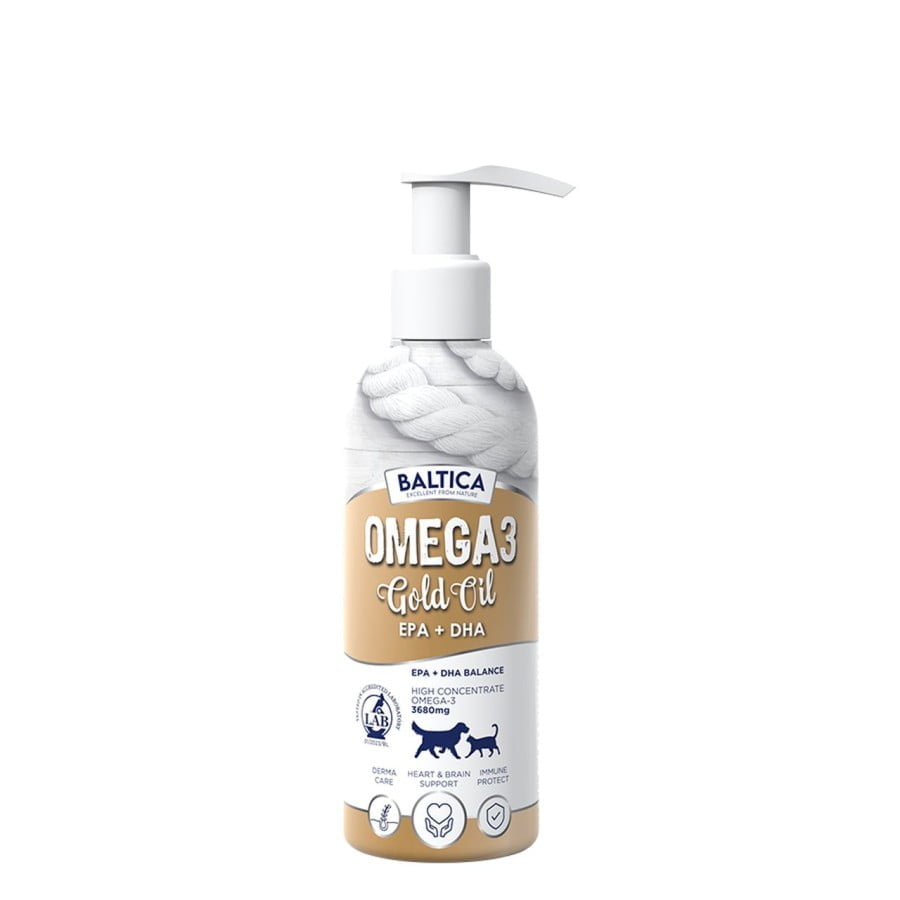BALTICA Omega-3 Oil 200ml to suplement diety ULTRA PREMIUM klasy, tłoczony z dzikich ryb morskich. Dzięki delikatnemu smakowi i zapachowi, produkt jest doskonale akceptowany przez zwierzęta. Regularna suplementacja olejem BALTICA Omega-3 Oil 200ml wspiera zdrowie psów i kotów, dostarczając im niezbędnych kwasów Omega-3, które są kluczowe dla ich ogólnego samopoczucia.