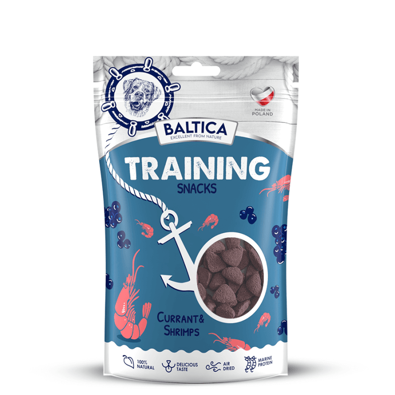 BALTICA Training snacks shrimps with currant 100g są odpowiednie dla psów w każdym wieku, począwszy od młodych szczeniąt po seniorów, zwłaszcza w trakcie treningu i jako zdrowa nagroda. Dzięki swojej miękkości, są one bezpieczne dla psów z wrażliwym układem pokarmowym i delikatnymi dziąsłami.
