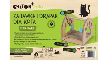 Carton+pets zabawka i drapak Fun Park to miejsce zabawy składające się z drapaka oraz zawieszek z naturalnych piórek.
