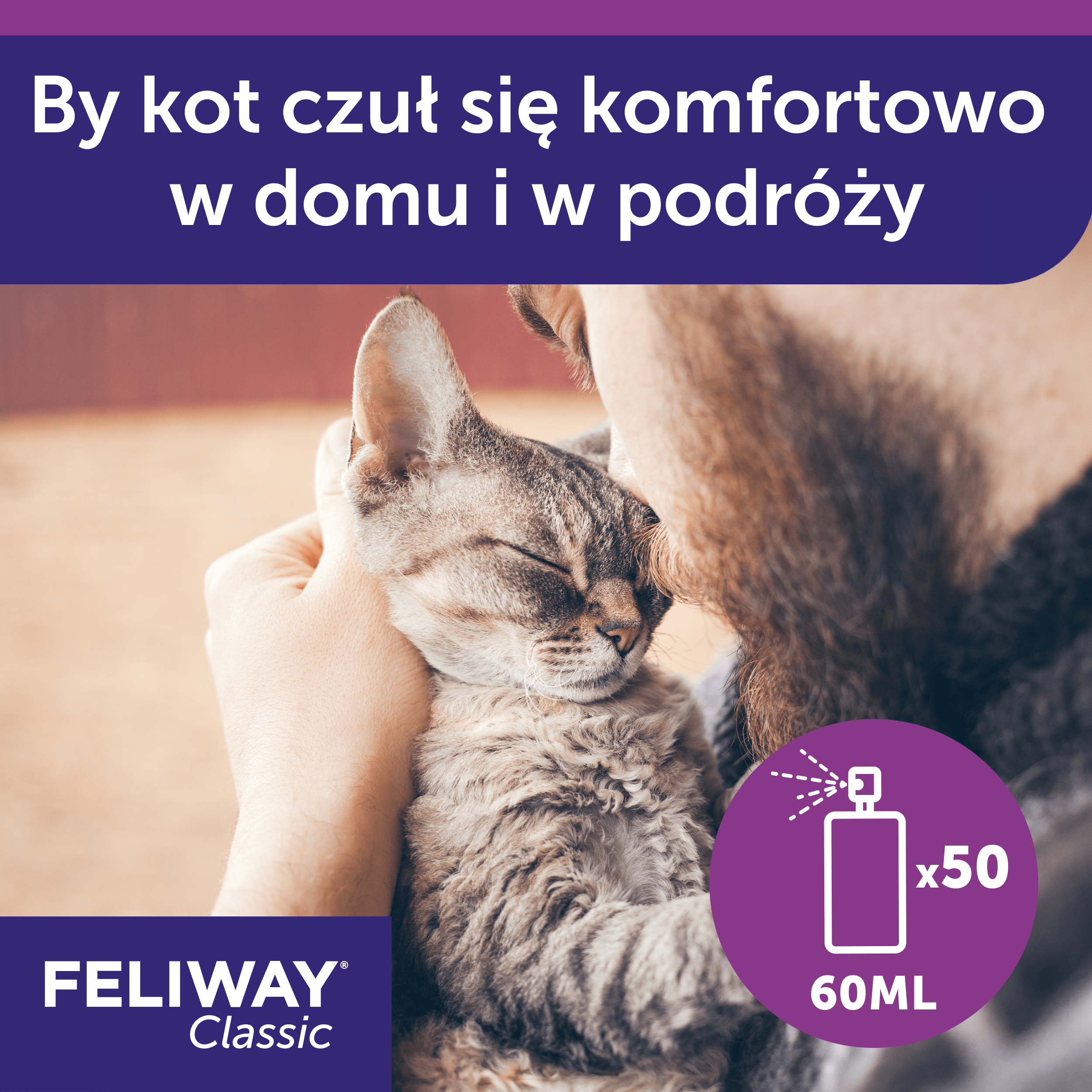 Planujesz podróż z kotem? Rozpyl FELIWAY Classic Spray w transporterze dla kota, 15 minut przed wyruszeniem w podróż.