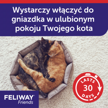 Produkt jest szczególnie polecany, gdy koty w domu wykazują oznaki konfliktów, takie jak syczenie, unikanie się lub agresja. Dyfuzor warto również zastosować, gdy wprowadzasz do domu nowego kota, aby ułatwić zwierzętom adaptację i zmniejszyć stres. CEVA Feliway Friends pomoże również w sytuacjach zmieniających rutynę, jak przeprowadzka lub remont, które mogą wywoływać napięcie u kotów. Dyfuzor jest bezpieczny dla kotów w każdym wieku i może być używany w ciągły sposób, aby wspierać spokojne relacje.