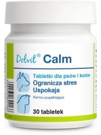 DOLFOS Dolvit Calm 30 tabletek to naturalny preparat dla psów i kotów zalecany do podawania w sytuacjach stresowych: podróż, wystawa, burza, fajerwerki, wizyta u lekarza, długotrwałe leczenie, spotkanie z innymi zwierzętami itp. Składniki preparatu mają działanie uspokajające i przeciwlękowe, zmniejszają poziom stresu.