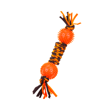 Gruby, pomara艅czowo-czarny sznur zako艅czony z obu stron pi艂kami z wypustkami pozwoli Ci aktywnie sp臋dzi膰 czas ze swoim pupilem a tak偶e zadba膰 o higien臋 uz臋bienia. Zabawka idealna do ci膮gni臋cia, gryzienia i aportowania