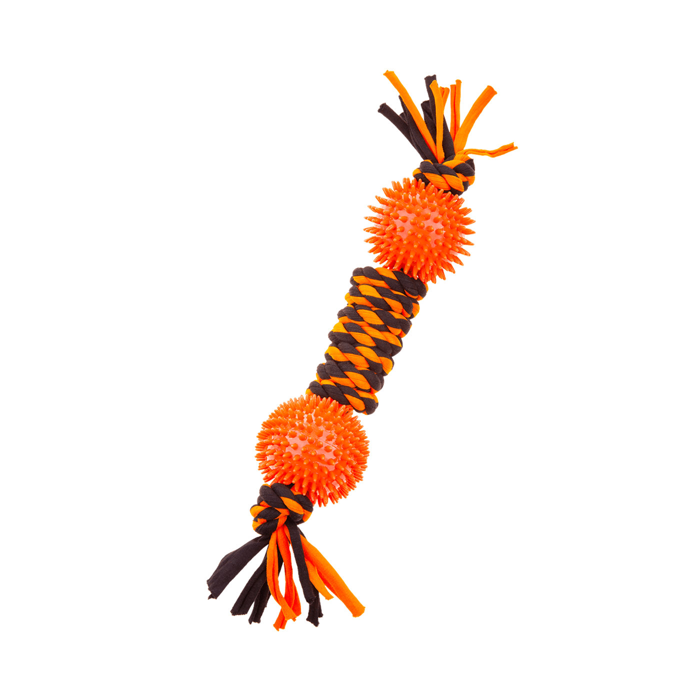 Gruby, pomara艅czowo-czarny sznur zako艅czony z obu stron pi艂kami z wypustkami pozwoli Ci aktywnie sp臋dzi膰 czas ze swoim pupilem a tak偶e zadba膰 o higien臋 uz臋bienia. Zabawka idealna do ci膮gni臋cia, gryzienia i aportowania