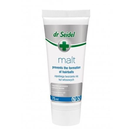 DR SEIDEL Malt to innowacyjny preparat stworzony z myślą o kotach, które zmagają się z problemem zatorów w przewodzie pokarmowym spowodowanych połykaniem sierści. Pasta skutecznie zapobiega tworzeniu się kul włosowych (pilobezoarów), które mogą prowadzić do wymiotów, zaparć i innych problemów trawiennych. Dzięki specjalnie opracowanej recepturze, Malt Pasta wspiera zdrowie przewodu pokarmowego i reguluje pracę jelit.
