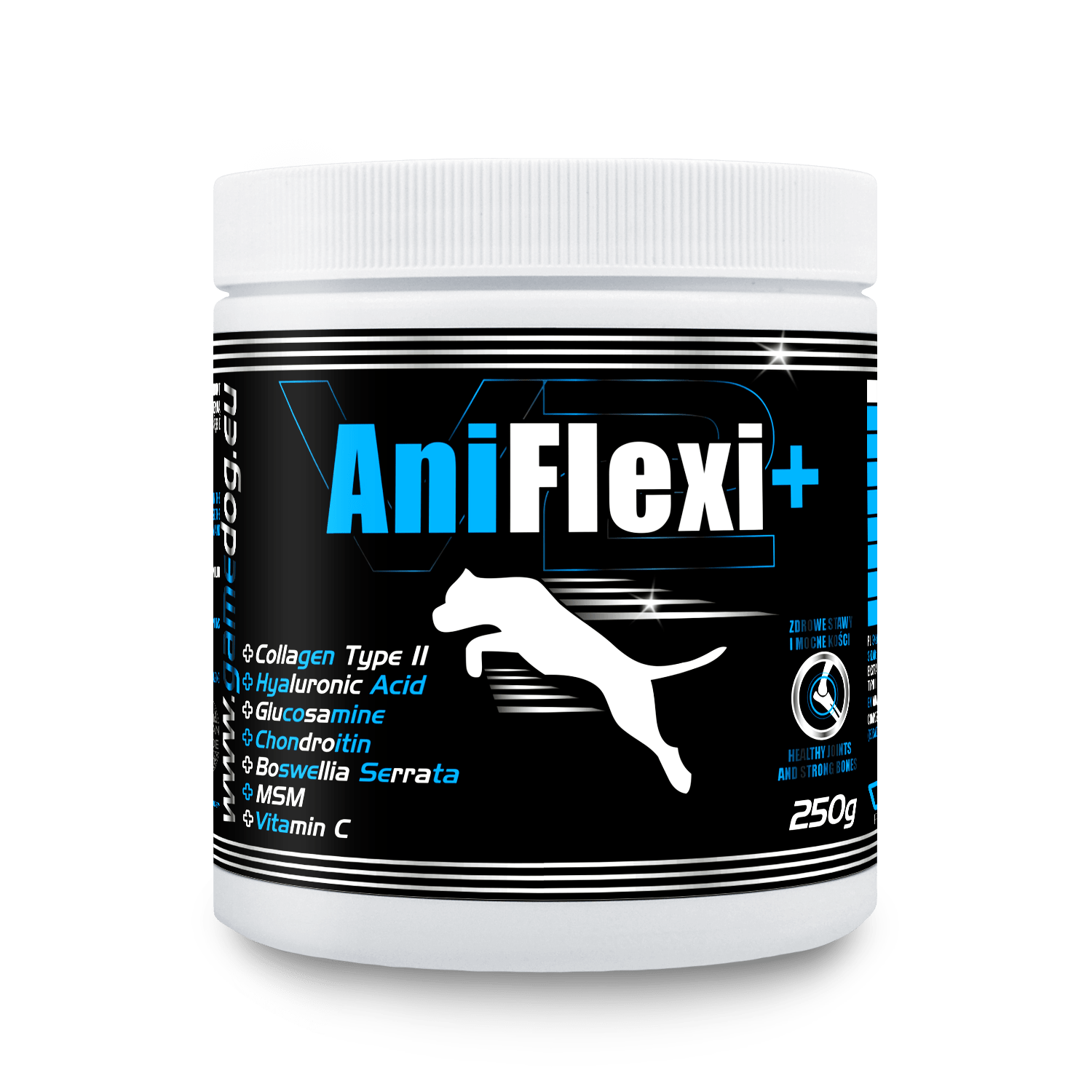 GAMEDOG AniFlexi+ 250g suplement wspierający stawy to innowacyjny suplement diety stworzony, by wspierać zdrowie stawów psów. Jego wieloskładnikowa formuła, zawierająca hydrolizowany kolagen, natywny kolagen typu II, kwas hialuronowy, Boswellia Serrata, MSM, glukozaminę, chondroitynę oraz witaminę C, została opracowana, aby zmniejszać stany zapalne i dolegliwości bólowe, poprawiać elastyczność i ruchomość stawów, a także odżywiać i wspierać regenerację tkanki chrzęstnej. Regularne stosowanie GAMEDOG AniFlexi+ 250g suplement wspierający stawy korzystnie wpływa na funkcjonowanie układu ruchu, hamuje postępowanie zmian degeneracyjnych w stawach oraz wspomaga prawidłowy rozwój u szczeniąt z nieprawidłowościami w budowie chrząstek stawowych.