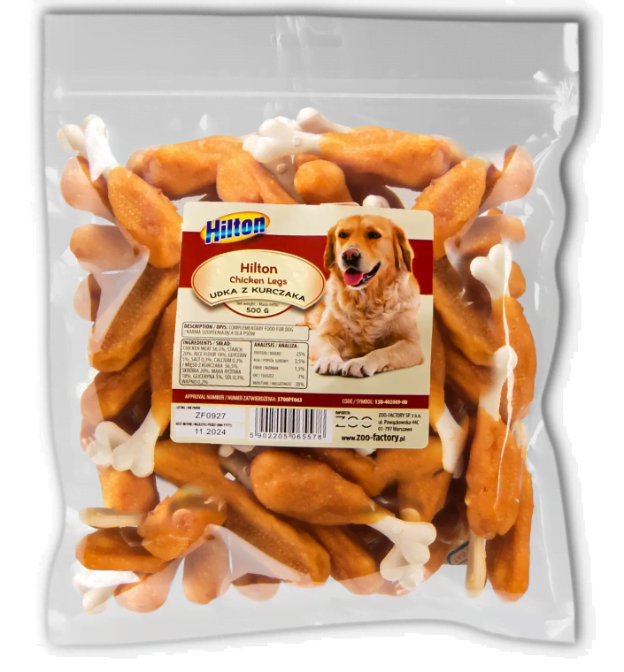 HILTON Udka z kurczaka to idealna przekąska dla psów każdej rasy i wielkości. Produkt można podawać psom powyżej 3. miesiąca życia jako zdrową nagrodę lub uzupełnienie codziennej diety. Przysmak jest szczególnie polecany dla psów aktywnych, które potrzebują dodatkowego źródła białka, oraz dla starszych psów, które cenią miękką i smaczną przekąskę. Dzięki swojej strukturze udka pomagają także w naturalnym oczyszczaniu zębów, co jest istotne dla higieny jamy ustnej psa.