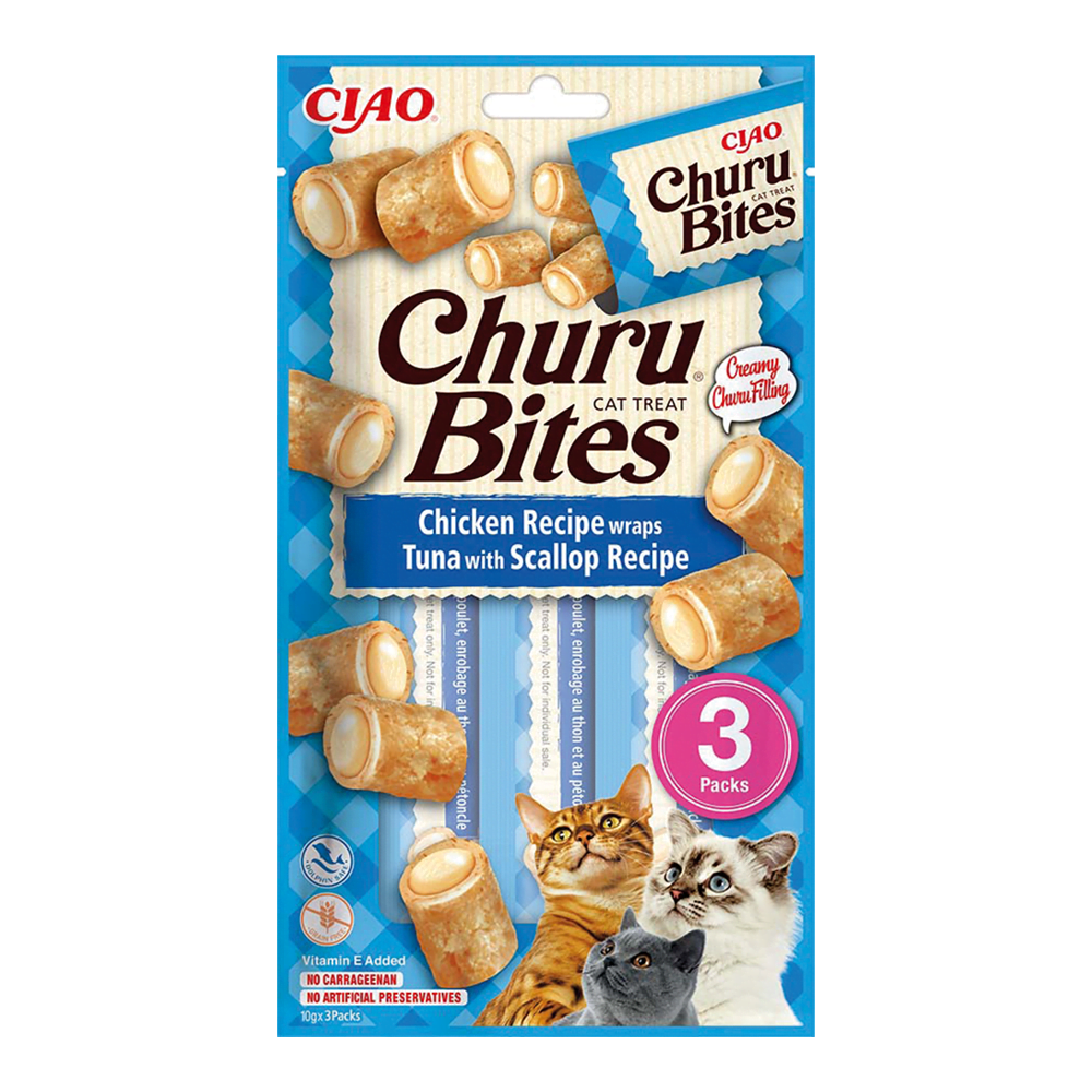 INABA CAT Churu Bites kurczak z tuńczykiem i małżą 3x10g
