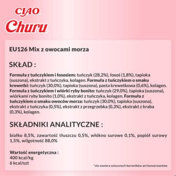 Zawartość zestawu INABA CAT Churu Mix z owocami morza 20x14g: