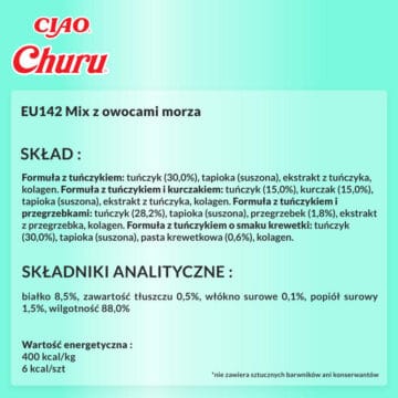 Zawartość zestawu INABA CAT Churu mix z tuńczykiem i owocami morza 40x14g:
