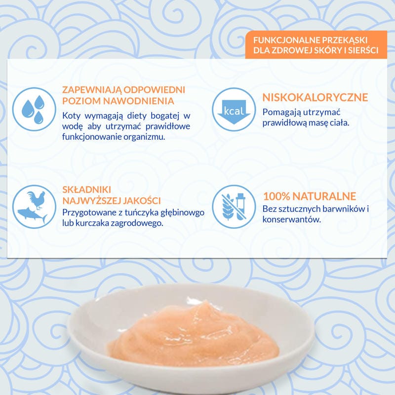 - Kremowa, wilgotna konsystencja, która jest uwielbiana przez koty i dodatkowo nawadnia.