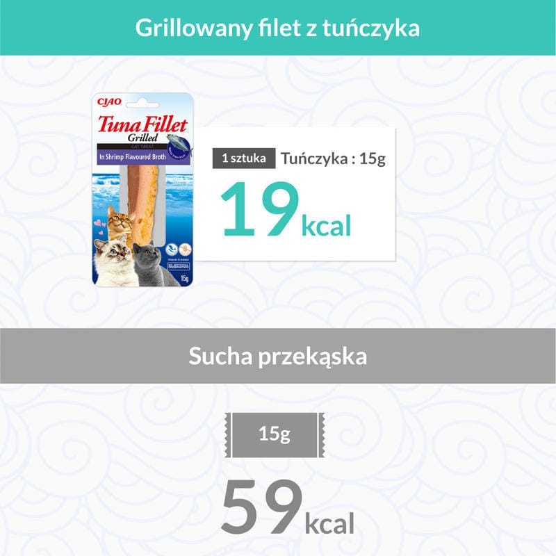 INABA CIAO Filet z grillowanego tuńczyka warto podawać kotom, które mają tendencję do picia małej ilości wody, ponieważ przysmak ten dostarcza dodatkowej wilgotności wspierającej ich nawodnienie. Produkt jest odpowiedni zarówno dla młodych, jak i starszych kotów, dzięki swojej naturalnej, lekkostrawnej formule. Jest idealny dla kotów wybrednych, a także tych, które potrzebują niskokalorycznej przekąski wspomagającej kontrolę wagi.