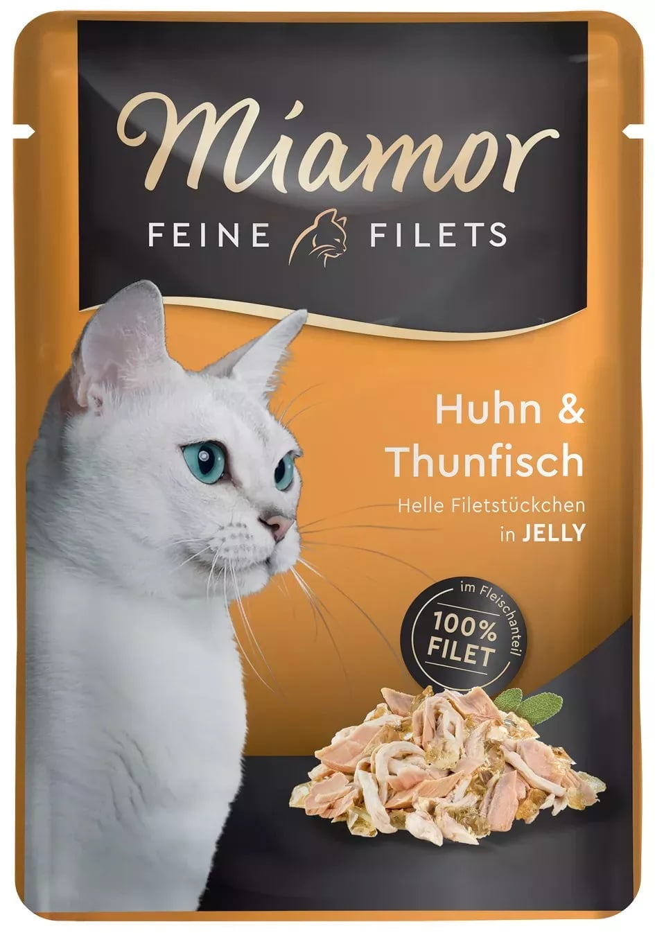 Lekkie kawałki fileta z kurczaka i tuńczyka w delikatnej galaretce, wzbogacone pysznymi składnikami. Wysokiej jakości specjalność z filetów – lekkostrawna, szczególnie dla wymagających kotów. Również dla kotów starszych i z nadwagą.