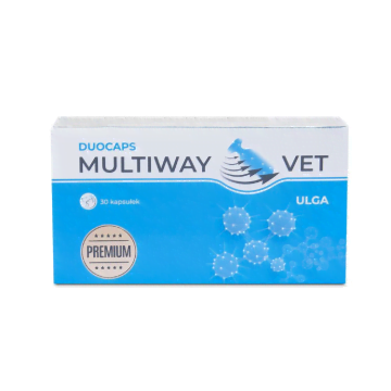 MULTIWAY VET DUOCAPS ULGA – to preparat wspierający łagodzenie objawów stresowych dla psów i kotów w kapsułkach. 1 opakowanie zawiera 30 kapsułek. Preparat posiada unikalny skład, który wspiera ograniczanie stresu u psów i kotów. Polecany zarówno dla młodych zwierząt, jak i starszych zwierząt.