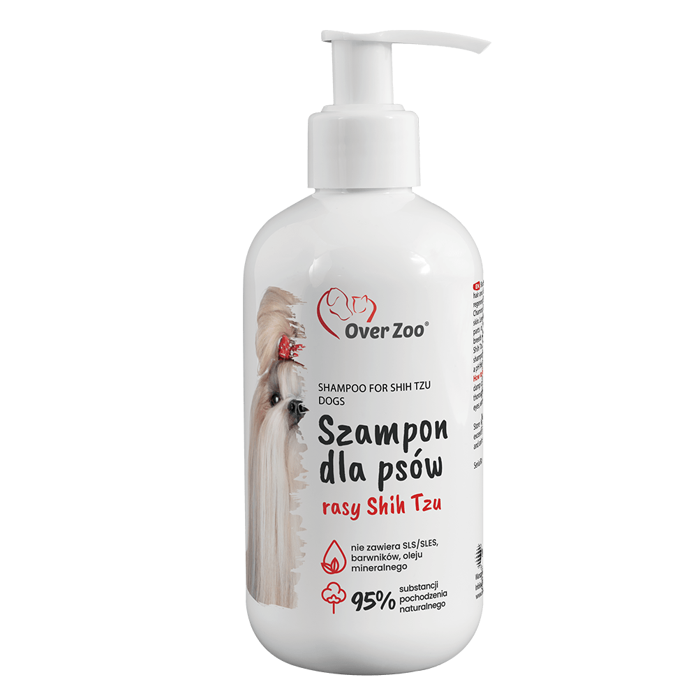 Over Zoo Szampon dla Shih Tzu 250 MlDelikatny szampon dla psów z proteinami wełny kaszmirskiej. Doskonale odżywia sierść oraz zapobiega jej elektryzowaniu. Łagodne substancje myjące nie podrażniają skóry zwierzęcia, a jednocześnie starannie ją myją i nawilżają.Dodatek olejku z awokado pielęgnuje sierść, natłuszcza oraz ułatwia jej rozczesywanie. W szamponie zastosowano również ekstrakt z rumianku, który pomaga w usunięciu zabrudzeń z jaśniejszych partii włosa, jak również zapobiega podrażnieniom skóry.