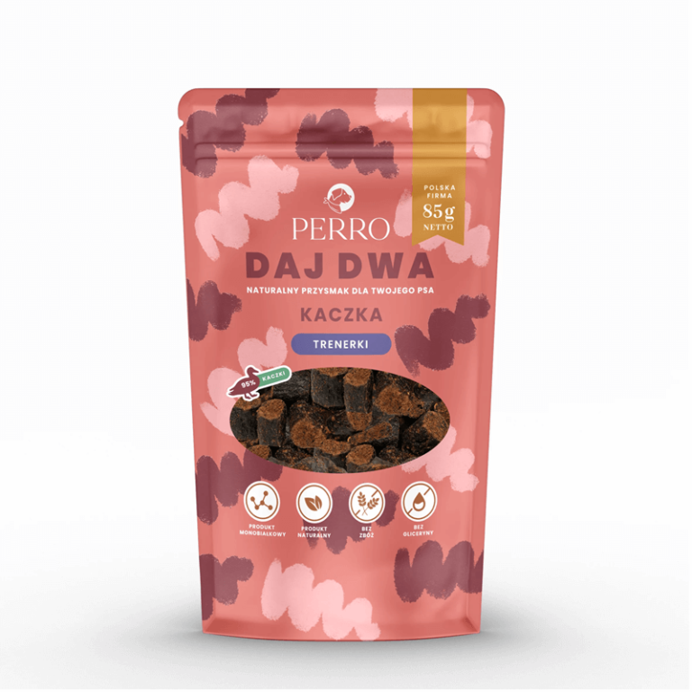PERRO Daj Dwa to naturalne, suszone przysmaki (bez gliceryny!), które bez wątpienia podkręcą entuzjazm treningowy czworonożnych przyjaciół.