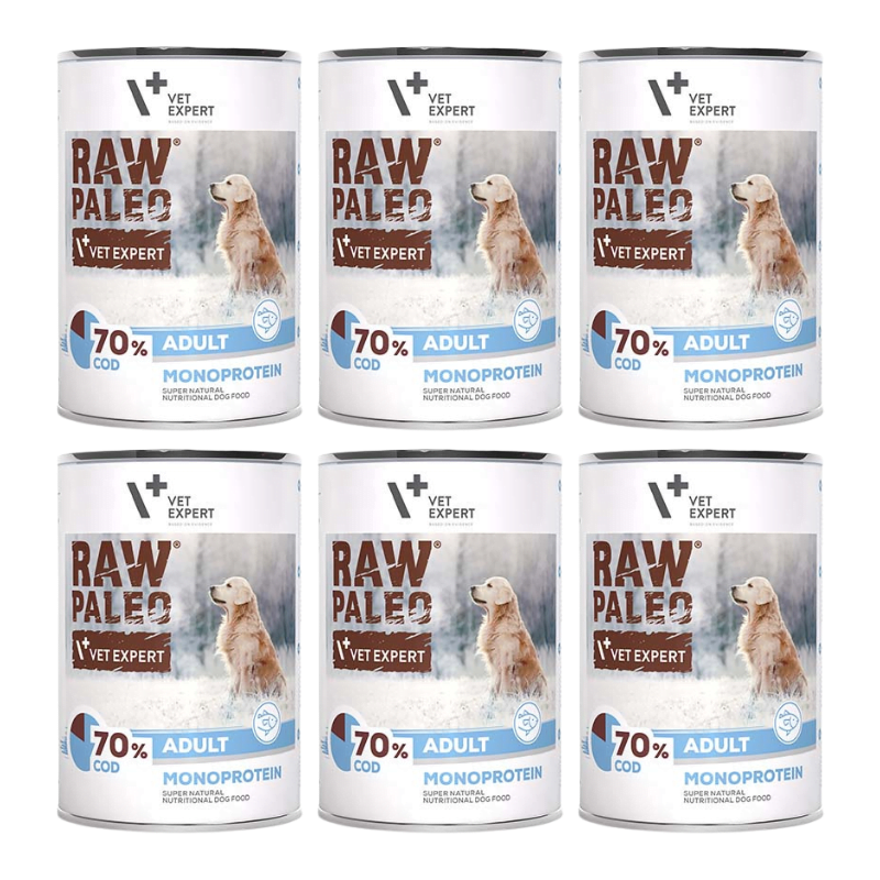 RAW PALEO mokra karma dla psów dorosłych dorsz 6x400g – Witalność i doskonałe samopoczucie