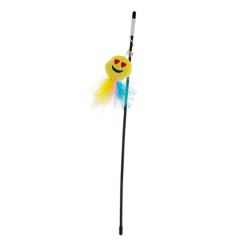 Wędka dla kota z emotką i piórkami