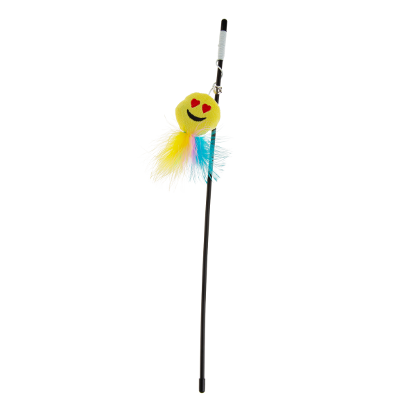 Wędka dla kota z emotką i piórkami