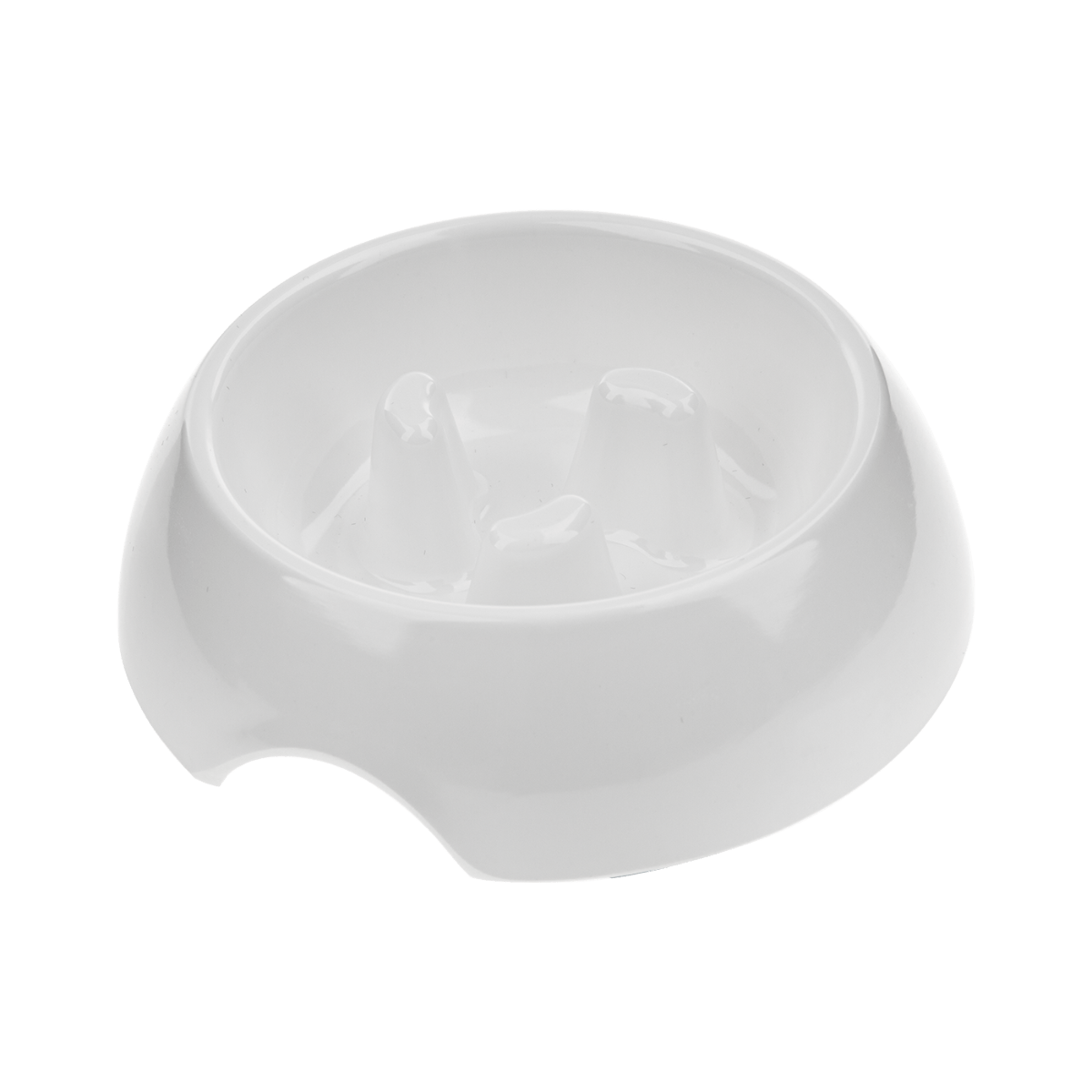Specjalne wypustki wewnątrz miski, uniemożliwiają łapczywe połykanie jedzenia, które jest wyjątkowo niebezpieczne. Zmniejsza ryzyko skrętów żołądka. Wolniejsze jedzenie umożliwia również lepsze dbanie o wagę Twojego pupila.