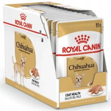 ROYAL CANIN Chihuahua 85g 12 PACK to specjalnie opracowana karma mokra, stworzona z myślą o dorosłych psach rasy chihuahua powyżej 8 miesiąca życia. Jej unikalna receptura w formie pasztetu jest dostosowana do potrzeb tej drobnej rasy, zapewniając optymalne wsparcie zdrowotne oraz wyjątkową smakowitość. Karma wspomaga zdrowie skóry i sierści, a także sprzyja prawidłowemu przebiegowi trawienia i pasażu jelitowego, co jest istotne dla małych ras. Tekstura karmy została zaprojektowana z myślą o delikatnych szczękach chihuahua, co zapewnia im wygodę podczas jedzenia.