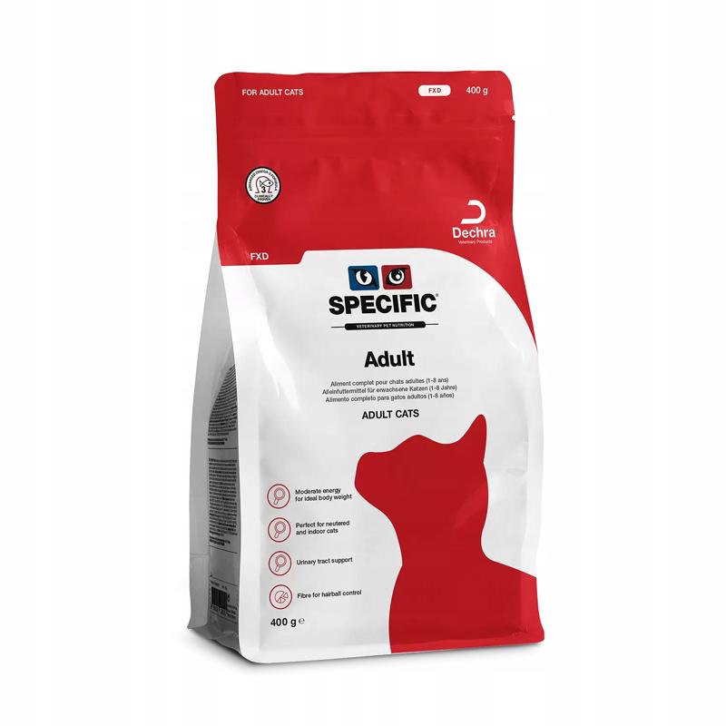 SPECIFIC™ Adult FXD to pełnoporcjowa i w pełni zbilansowana karma sucha dla kotów dorosłych w wieku do 8 lat.