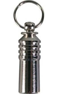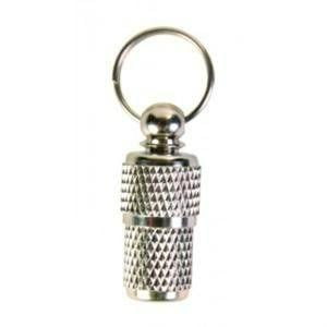 Metalowa adresówka dla psa, która zawiera mały arkusz papieru, na którym można zapisać dane kontaktowe oraz adres właściciela.