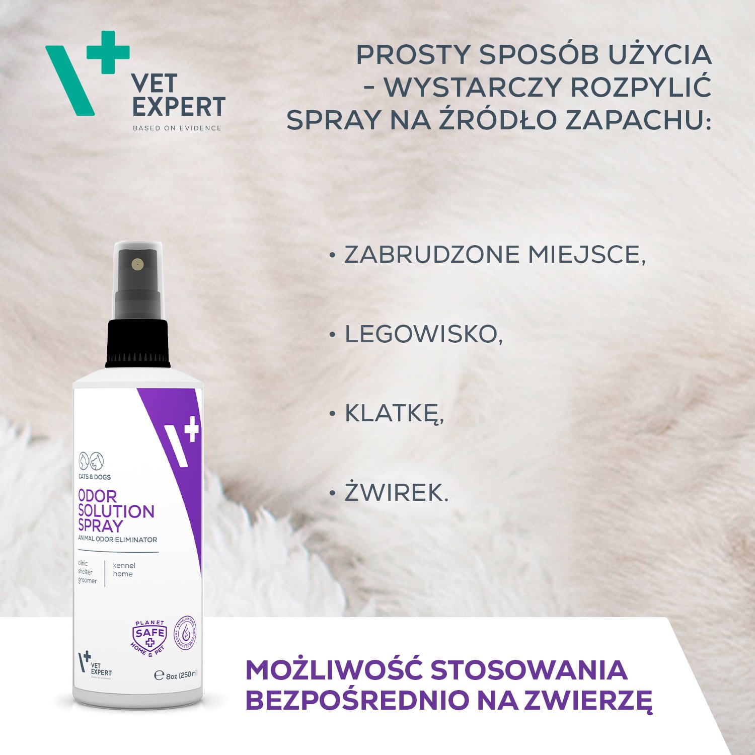 Szerokie zastosowanie i bezpieczeństwo – VET EXPERT Animal Odor Eliminator 250ml neutralizator
