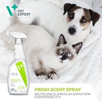 Efekt neutralizacji zapachów przez VET EXPERT Odor Solution jest natychmiastowy, a jego działanie utrzymuje się przez długi czas po aplikacji. Regularne stosowanie preparatu zapewnia długotrwałą świeżość i zapobiega powstawaniu nowych nieprzyjemnych zapachów.