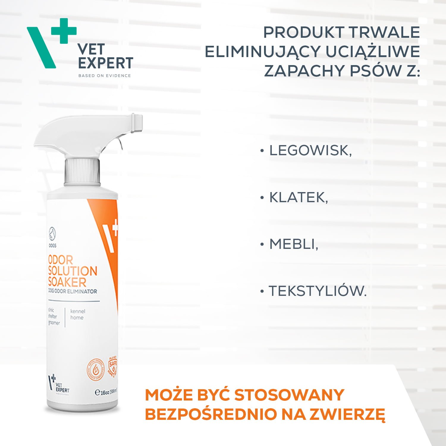 Czy VET EXPERT Odor Solution Soaker Dog jest bezpieczny dla wszystkich powierzchni?